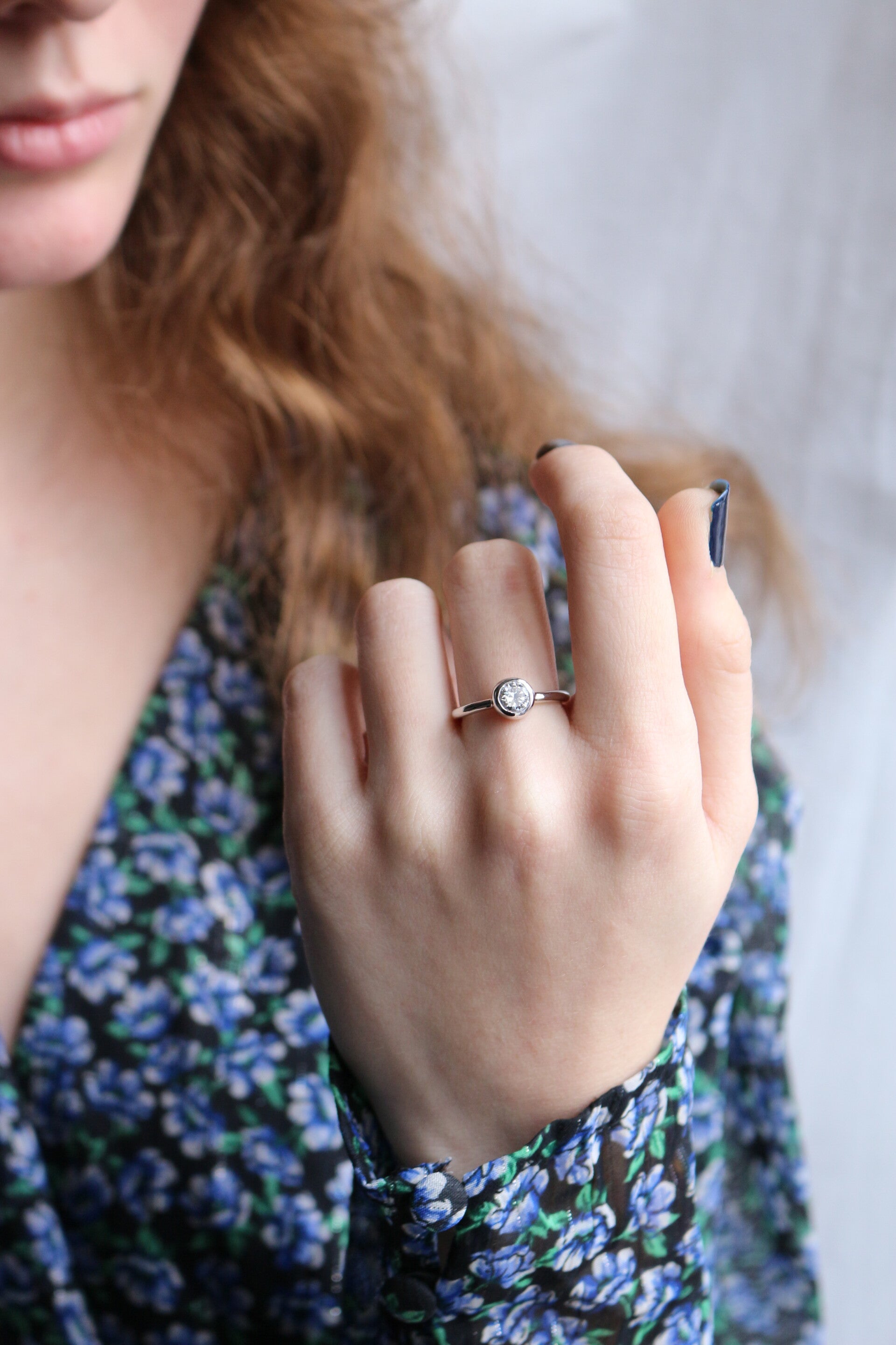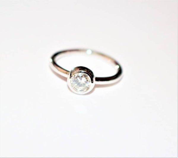 Bague en or blanc 750 (18k) ornée d’un diamant brillanté en serti clos