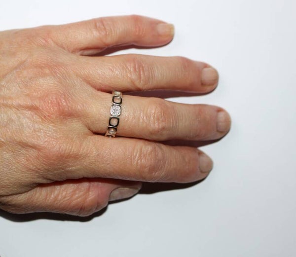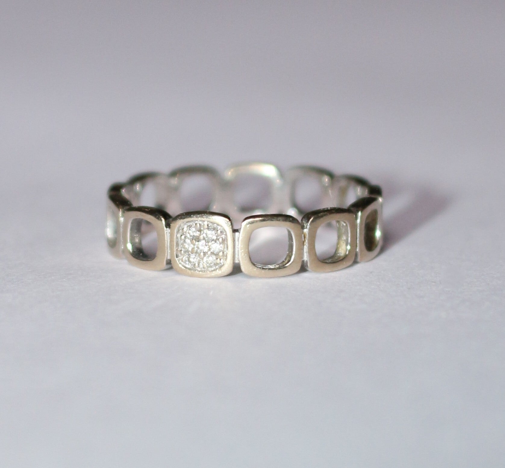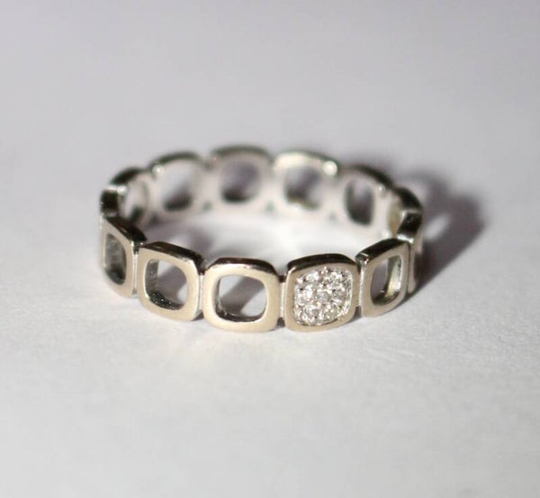 Alliance Dinh Van collection Impression Domino en or blanc 750/1000e (18 carats) et un pavage diamants