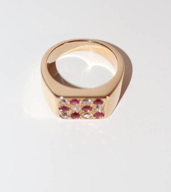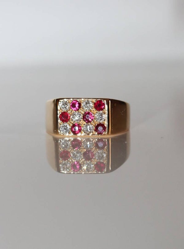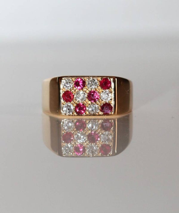 Bague Chevalière Rubis Et Diamants