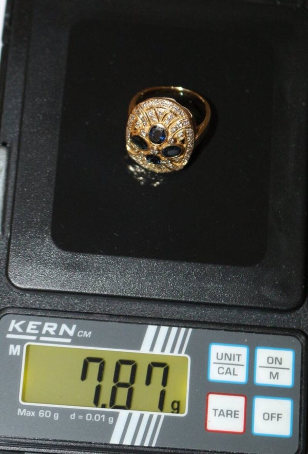 Etat : bon état général, quelques micro rayures d'usage à l'or et micro égrénures aux saphirs