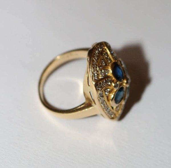 Bague ovale or jaune saphirs diamants