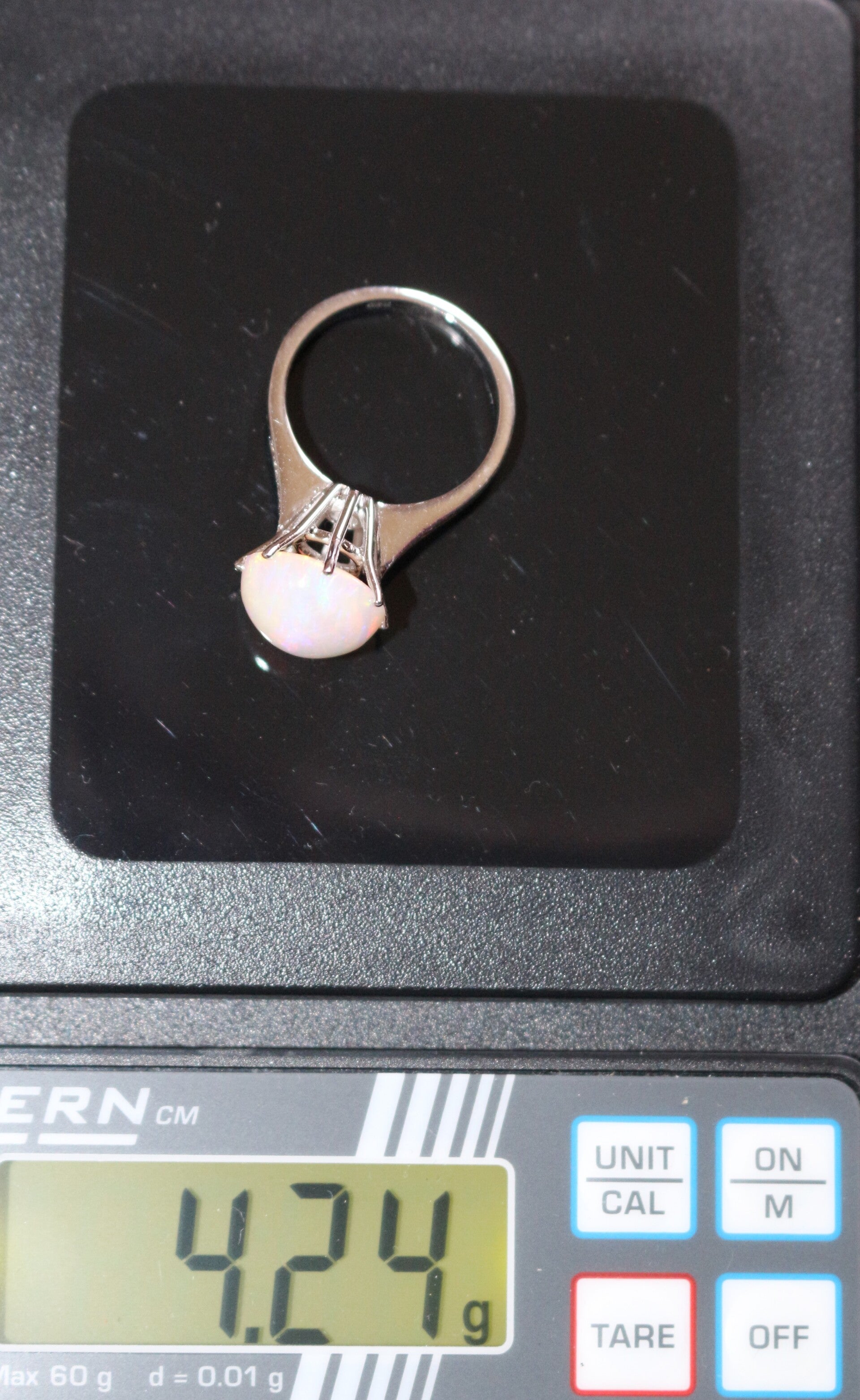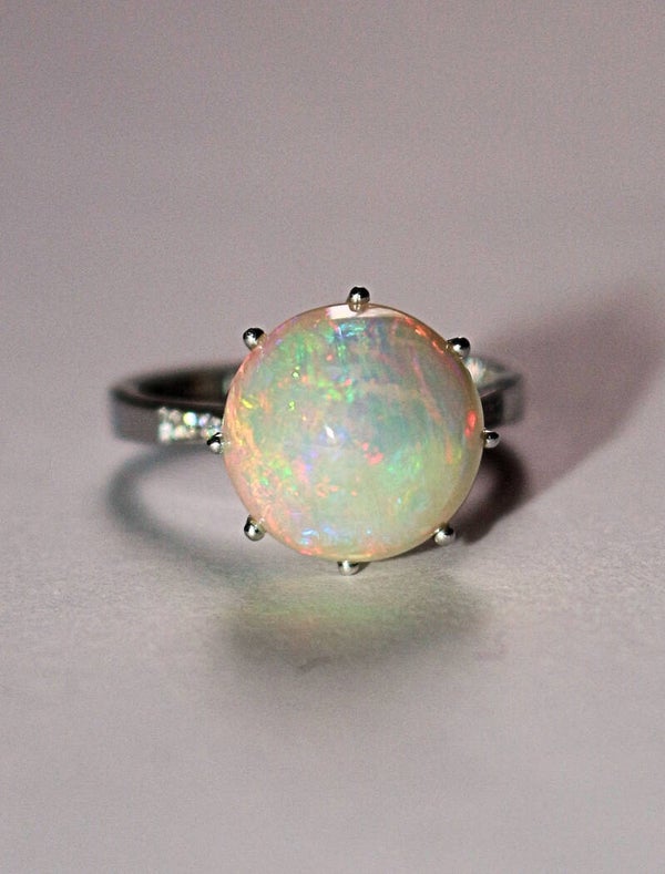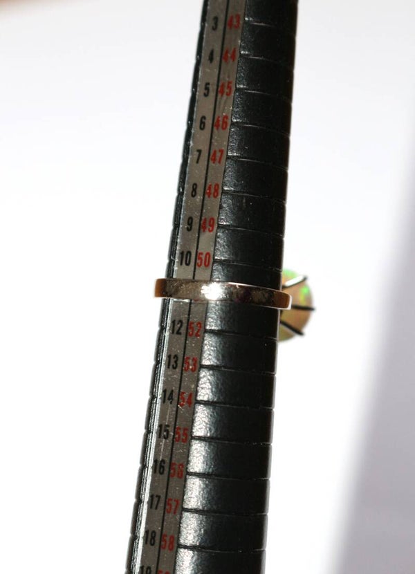 Dimensions : opale de 10 mm de diamètre / 6 mm de profondeur (3.42 carats environ), anneau mesurant 3 mm de large