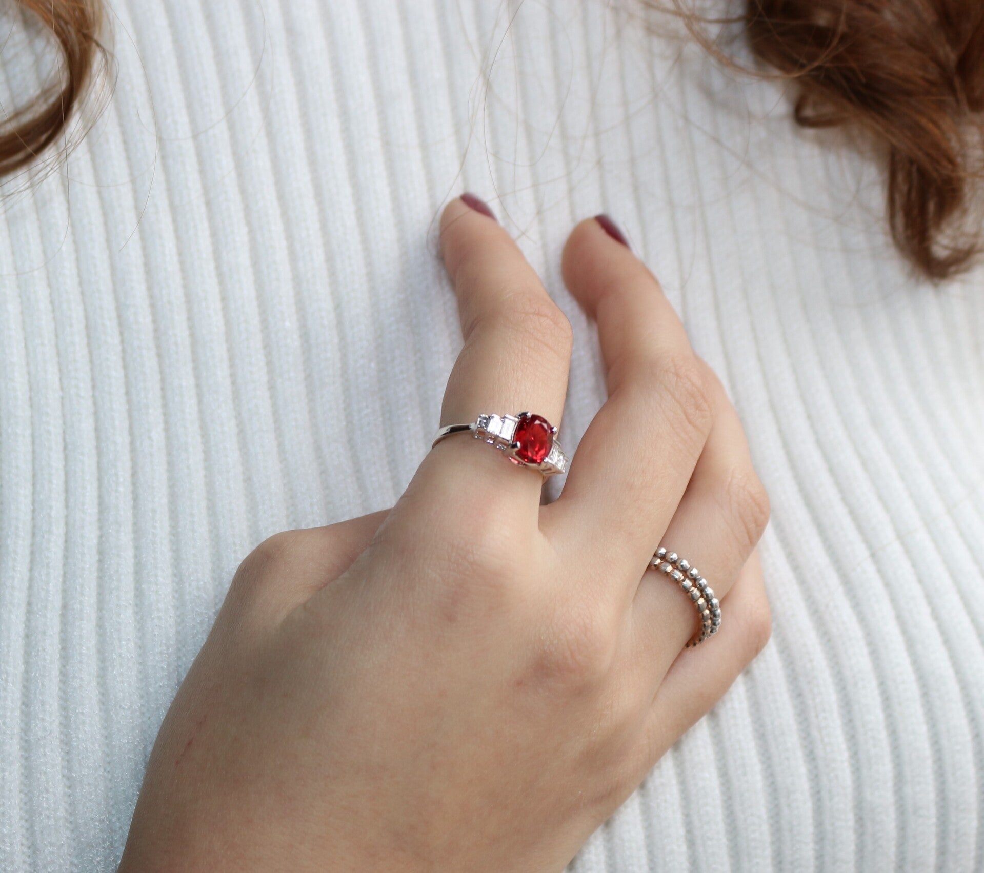Bague Or Blanc Et Spinelle Naturel
