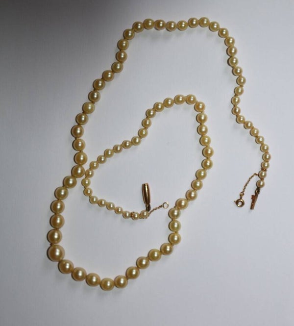 Collier de 90 perles de culture en chute fermoir or jaune