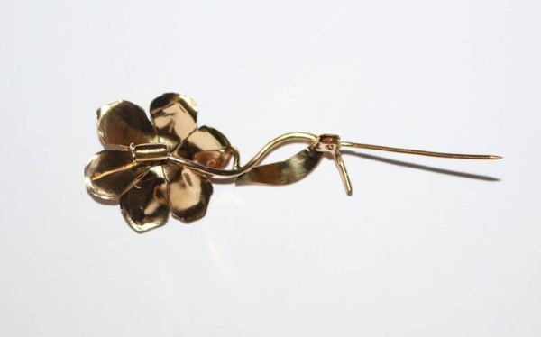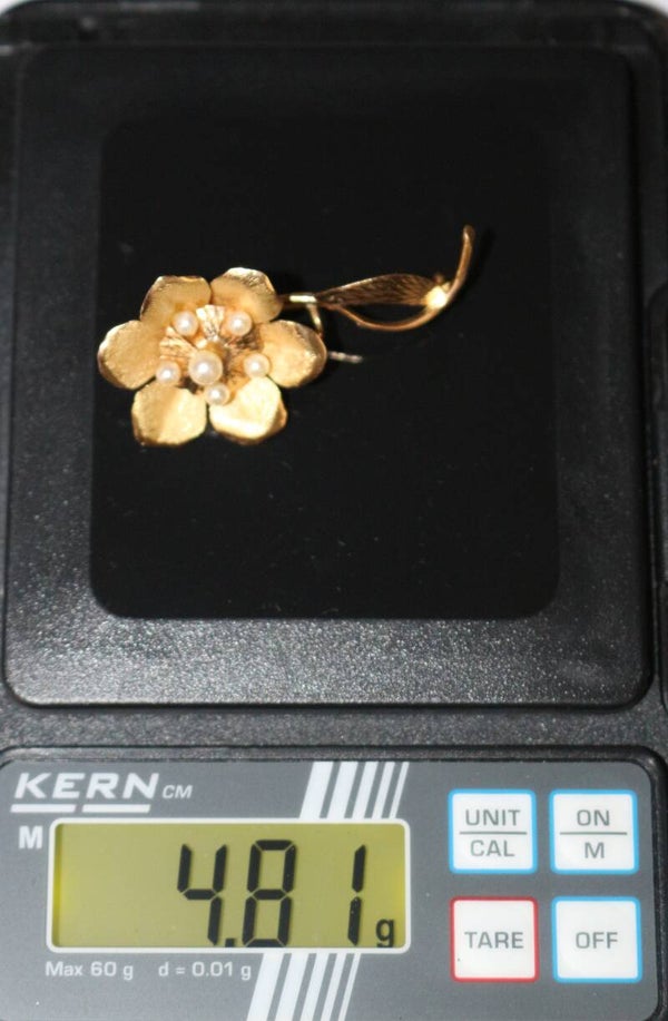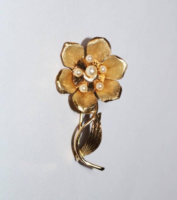 Broche Fleur Rétro Or Jaune Et Perles