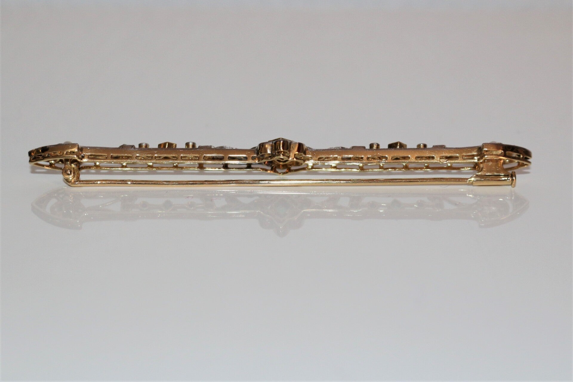 état : bel état général, trace d'une ancienne petite soudure (à gauche du motif principal sur photo), petites pierres égrisées.