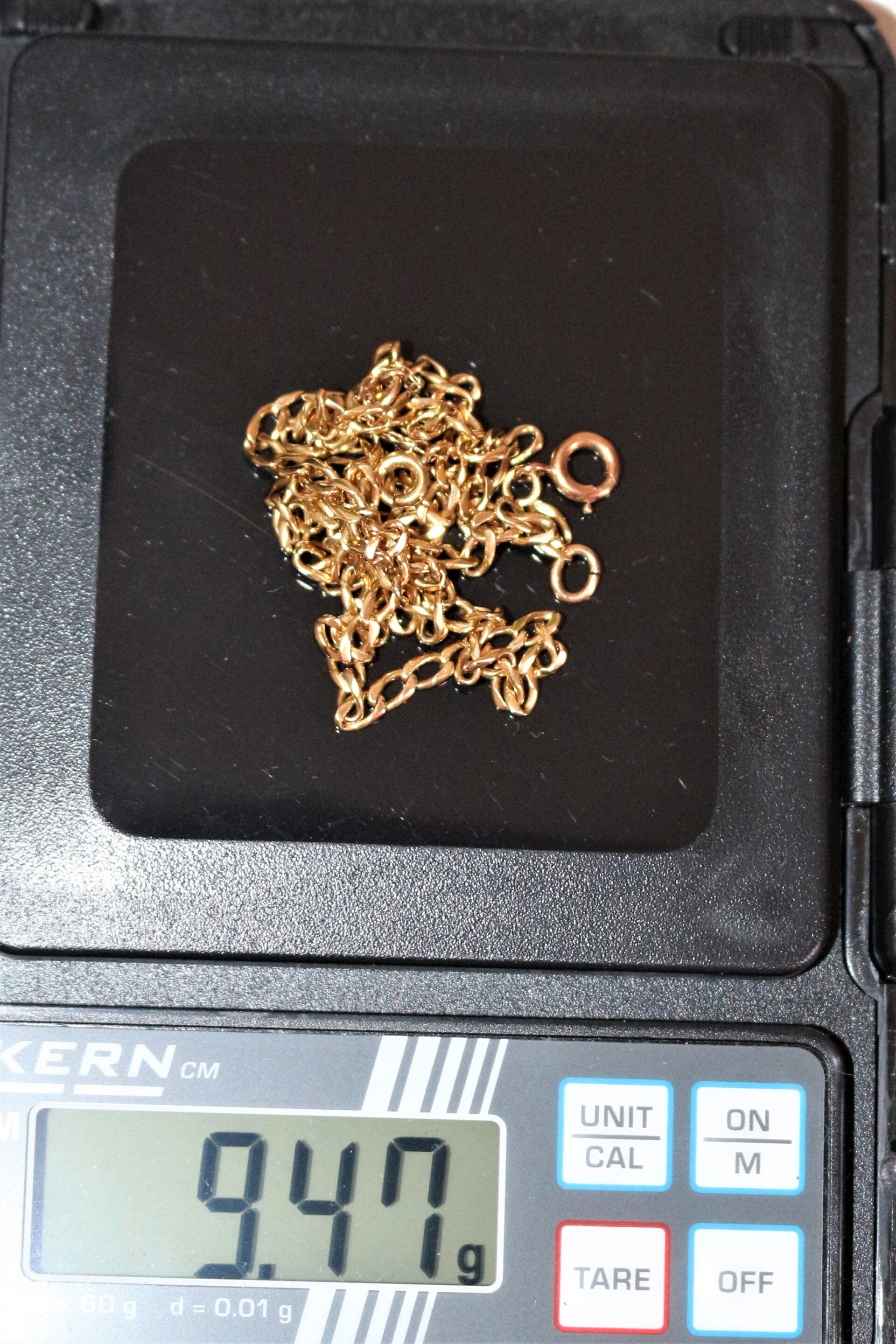 Poids : chaîne de 9,47 gr + pendentif de 15,50 gr pour un total de : 25 gr bruts environ