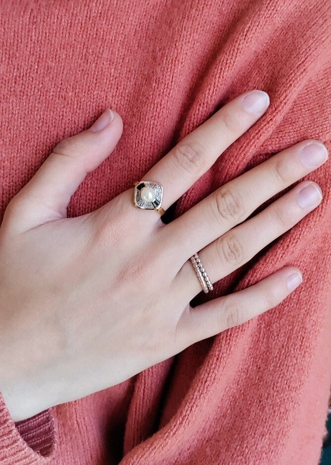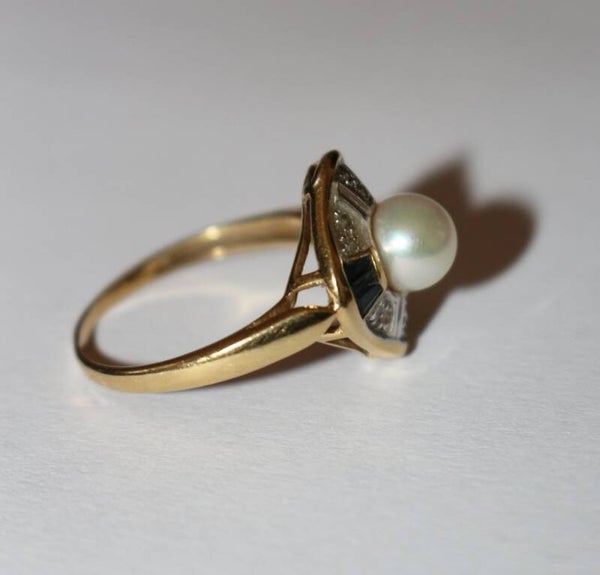 Bague en or jaune 750 millièmes ( 18 carats) ornée d'une perle de culture crème de 6 mm de diamètre,